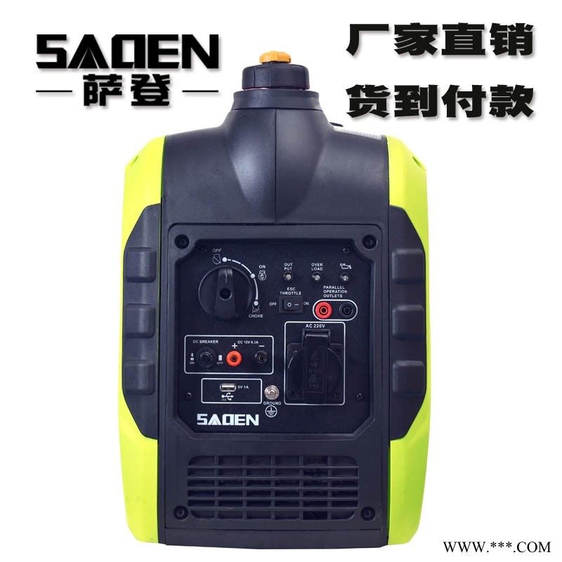 萨登2千瓦静音汽油发电机型号为DS2200i,此款静音汽油发电机仅重21kg,具有声音小、重量轻、体积小的特征,声音7米处仅58分贝,体积也是非常小:50*30*46cm。与此同时2千瓦静音汽油发电机还具有超长时间续航的能力,发电机70%功率下可连续工作时间6小时。该产品的特点为:全新设计的变频发电机可提供优质电源;四冲程发动机大幅度减少了燃油消耗,降低了发电机噪音;新型发电体机身的重量与体积大大减小,轻巧、方便;采用人性化的设计面板以及报警功能,操作简单。DS2200i静音汽油发电机被广泛应用于户外野营,家庭应急,电信,移动,铁通,机构,学校,防汛物资,矿山,航运,路桥工程等领域。
