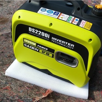 萨登2千瓦静音汽油发电机型号为DS2200i,此款静音汽油发电机仅重21kg,具有声音小、重量轻、体积小的特征,声音7米处仅58分贝,体积也是非常小:50*30*46cm。与此同时2千瓦静音汽油发电机还具有超长时间续航的能力,发电机70%功率下可连续工作时间6小时。该产品的特点为:全新设计的变频发电机可提供优质电源;四冲程发动机大幅度减少了燃油消耗,降低了发电机噪音;新型发电体机身的重量与体积大大减小,轻巧、方便;采用人性化的设计面板以及报警功能,操作简单。DS2200i静音汽油发电机被广泛应用于户外野营,家庭应急,电信,移动,铁通,机构,学校,防汛物资,矿山,航运,路桥工程等领域。