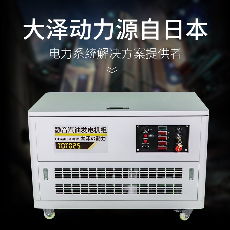 25KW三相汽油发电机多少钱 大泽动力TOTO25具有力矩大、噪音低、体积小、重量轻、使用方便、运行恒速等优点,还可以搭配各种齿轮箱以达到改变输出速度和转矩的目的。具有远端启动接口,可设置启动延时、停机延时时间实现发电机组自动启动和停机。 可选择监测单相电压或三相电压。 具有过压、欠压、过流、油压低、水温高、急停、超速、频率超限、启动失败等故障停机保护功能。 电池电压低、充电失败、过流、油压低、水温高等预告警功能。 使用动画图标式告警、故障显示、高亮度、多色液晶显示器显示参数。 自动记录油机运行时间。经延时确认,机组自动启动(1~8次可调,守次启动成功率>99%),自动确认发电机组供电正常后,向负载供电。市电恢复正常后,经延时确认自动冷却停机(冷却停机时间0~300s可调)。同时具有众多的保护功能,数字显示电压、电流、频率、功率、功率因数、运行时间、电池电压、转速等参数。