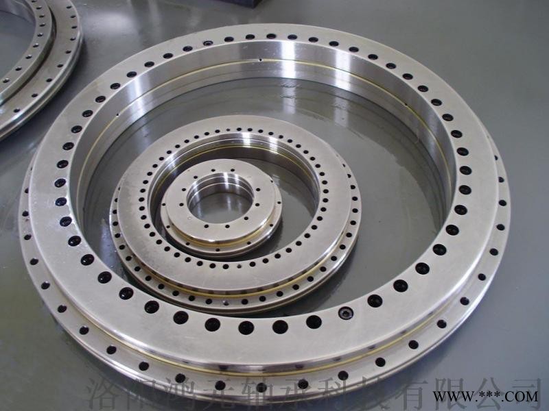 介绍:推力-向心组合结构,可同时承受双向轴向载荷、径向载荷和倾覆力矩。轴承上均布有安装孔,可使用螺栓直接对轴承固定;出厂时轴承已加有预载荷,安装无需调整游隙;YRT转台轴承系列适用于转速较低、运转周期较短、对刚性和精度要求高的场合,如回转工作台、分度头。