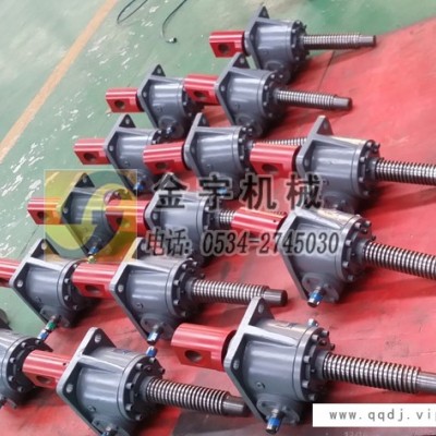 德州金宇机械传动丝杆升降机的种类有两种,梯形丝杆升降机和滚珠丝杆升降机,均是蜗轮蜗杆结构的升降设备,特别是梯形丝杆升降机,运行速度很有限,如果运行速度过快,会导致蜗轮蜗杆和丝杠之间的磨损加剧,同时发热情况严重,造成抱死现象,精度降低,使用寿命也会随之降低。丝杆升降机,螺旋升降机,德载传动。 如果想让梯形丝杆升降机发挥快的速度,可以使用四级电机,选择快速比,或加大丝杠的螺距,做双头丝杠。如果还是达不到您要的速度,可以选用滚珠丝杆升降机,滚珠丝杆升降机的速度普遍大于梯形丝杠,且有大螺距丝杠可供选择。在运行稳定和安全的情况下,尽量使用速度慢一点的升降机。