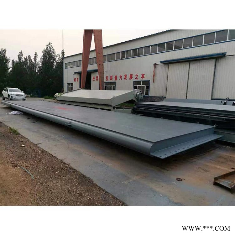 在水利水电建设中,随着城市用水、景观建设及环境整治和灌溉、发电的需要,翻板闸,水闸和橡胶坝得到广泛的运用。然而,橡胶坝等生产比较复杂,运行时充水(充气)升坝或放水(放气)塌坝时间较长,影响快速截流或泄洪,再加上橡胶易老化的弊端,容易发生质量事故。现在市场上出现大量钢结构闸门,或翻板闸但无论是提升式或卧倒式,单孔都很难适用较宽的河道。钢坝闸是一种新型可调空控溢流闸门,它有土建结构、带固定轴的钢闸门门体、启闭设备等组成。这种建筑物适合于闸孔较宽(10米~~100米)而水位差比较小的工况(1~~7米),由于它可以设计的比较宽,可以省去数孔闸墩,所以不仅结构简单,可以节省不少土建投资,而且可以立门蓄水,卧门行洪排涝,适当开启调节水位,还可以利用闸门门顶过水,形成人工瀑布的景观效果。