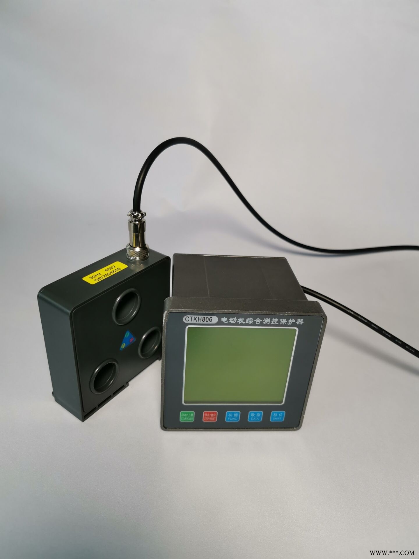 “tE时间保护”符合有关增安型防爆电动机过载保护的国家标准(3-2000)交流采样,测量A、B、C三相电流及控制回路电压现场显示电动机运行状态,保存三次电动机故障跳闸记录一路保护输出,二路自定义继电器输出,一路4~20mA电流输出,一路RS485接口分体式电机保护器可选DI输入模块,控制正反向启动,自启动,及开关量控制单元大屏幕LED或高清晰度宽温液晶显示,并具有背景光,跟随电动机运行状态和用户要求实时显示三相电流不平衡、断相、过压、欠压、自启动等功能用户可取可舍启动中过流保护设定,可根据电机情况进行多种倍数调节模拟量输出微调功能,可以消除由于线路衰减造成的误差精度2路可编程继电器J2 J3多达5种设置输出功能。满足不同的现场保护情况采用E2PROM存储技术,实现参数电设定,掉电后设定参数仍保存下来,勿须再设定采用RS485通信总线,可广泛用于各种监控系统作为带有电机保护及控制的智能化监控单元一机多用,可取代电流表、电压表、热继电器、电流互感器、时间继电器和漏电继电器等