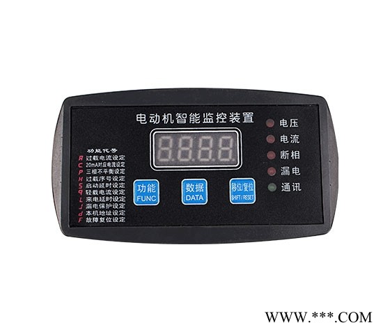 “tE时间保护”符合有关增安型防爆电动机过载保护的国家标准(3-2000)交流采样,测量A、B、C三相电流及控制回路电压现场显示电动机运行状态,保存三次电动机故障跳闸记录一路保护输出,二路自定义继电器输出,一路4~20mA电流输出,一路RS485接口分体式电机保护器可选DI输入模块,控制正反向启动,自启动,及开关量控制单元大屏幕LED或高清晰度宽温液晶显示,并具有背景光,跟随电动机运行状态和用户要求实时显示三相电流不平衡、断相、过压、欠压、自启动等功能用户可取可舍启动中过流保护设定,可根据电机情况进行多种倍数调节模拟量输出微调功能,可以消除由于线路衰减造成的误差精度2路可编程继电器J2 J3多达5种设置输出功能。满足不同的现场保护情况采用E2PROM存储技术,实现参数电设定,掉电后设定参数仍保存下来,勿须再设定采用RS485通信总线,可广泛用于各种监控系统作为带有电机保护及控制的智能化监控单元一机多用,可取代电流表、电压表、热继电器、电流互感器、时间继电器和漏电继电器等
